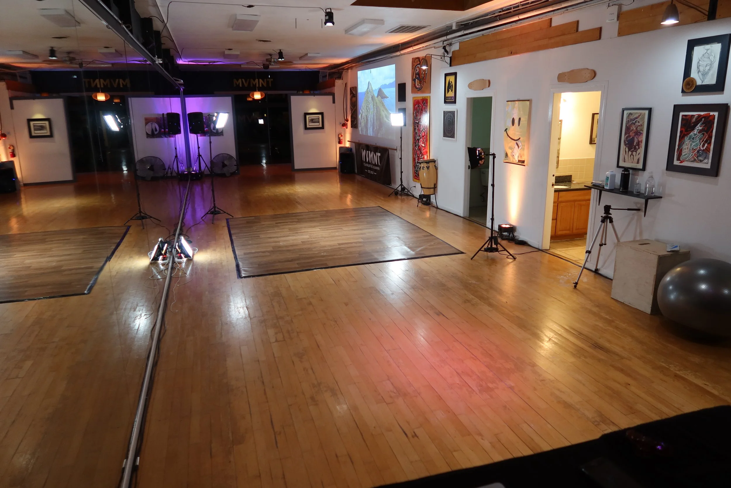 Our space has been designed to inspire our students to create. As an intimate performance venue, the open floor provides a panoramic view of the space, while the multi-media studio & private gym is nestled in the back.